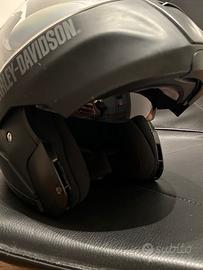 casco integrale modulare HD imbottiture in ottimo stato qualche segno d'uso sulla visiera trasparente e un cerchio nel retro dove c'era un adesivo che ho tolto . misura media 58 come riportato nei codici in foto. Costo nuovo 450 euro