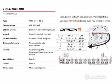 â˘Il casco modulare ORIGINE è perfetto per l'uso cittadino e turistico con la sua ricca gamma di caratteristiche standard e le massime prestazioni in termini di comfort, dimensioni, sicurezza e funzionalitĂ .