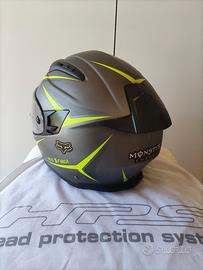 Casco integrale moto in buone condizioni taglia 58 M con adesivi Monster removibili. Calotta in Fibra tricomposita Visiera chiara antigraffio Predisposizione per lente Pinlock (Inclusa) Visiera parasole Prese aria superiori Prese aria mentoniera Estrattori Interni removibili e lavabili Interni in tessuto anallergico Cinturino a doppio anello Paranaso removibile Peso: 1250+/- 50g
