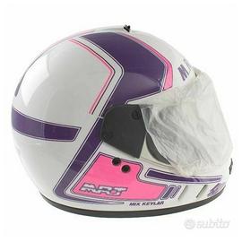 (R.7120) Vendo casco vintage integrale nuovo originale MRT M. Robert Strada Mix Kevlar omologato di colore bianco, viola, rosa, taglia disponibile solo 61 XL , con spugna interna sgretolata , da rifoderare