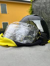 Vendo casco integrale scorpion tg.s usato ma in buone condizioni unico particolare da sistemare e' la leva per abbassare la visierina parasole in ogni caso fornisco anche visiera specchiata per risolvere il problema oltre alla sua visiera trasparente.Non spedisco astenersi perditempo o affaristi.