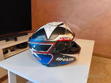 Casco integrale Shark pari al nuovo con aerografie dedicate al pilota Scott Redding, chiusura doppia D e visiera parasole integrata .