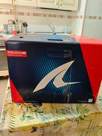 Chiusura del sottogola tramite fibbia Double-D, la più rassicurante sul mercato e l'unica omologata per la pista.