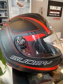 Vendesi casco integrale Suomy in carbonio. Taglia L. Leggerissimo, chiusura con doppio anello. Nessun graffio o strisciatura.