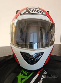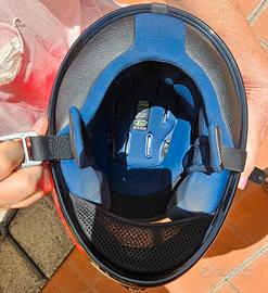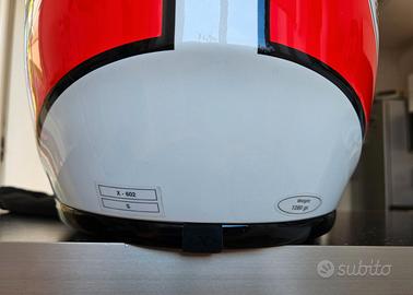 (marca NOLAN) taglia S (56-57); calotta esterna in fibre composite, molto leggero (1280 gr); con predisposizione N-Com; innovativo sistema di ventilazione; visiera chiara e antigraffio in Lexan; incluso visiera interna anti-appannamento; imbottitura completamente sfoderabile e lavabile; usato poche volte per passeggero; in ottimo stato, nessun graffio né sulla calotta esterna né sulla visiera; mai incidentato. Vendo per solo 10 euro, perché il sottile strato di gommaspugna sotto la fodera superiore sta iniziando a disintegrarsi. Questo strato serve esclusivamente per il comfort e la circolazione dell'aria. Con un po' di abilità e esperienza nel fai da te, si può sostituire quel sottile strato di gommaspugna, rendendo il casco perfettamente funzionante, senza comprometterne in alcun modo le funzioni protettive essenziali.