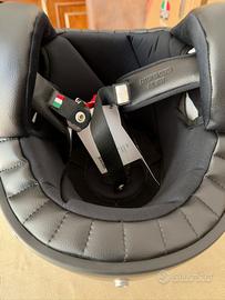Casco jet dallo stile vintage e Cafe Racer, realizzato in fibra di vetro, con interni removibili e fibbia di chiusura a Doppia D; dettagli tecnici di qualità e uno stile unico. Colore Flake Grey. Taglia XL (60-61). Nuovo, mai indossato, ancora con cartellino.
