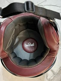 Casco in fibra rivestito innpelle mod america di baruffaldi ( pagato quasi 600€) Molto comodo e confortevole, con baruffaldi non sbagli mai, super leggero Ha solo su un lato la pelle un po rovinata da eleatico occhiali , Ideale per custom, harley e scooter