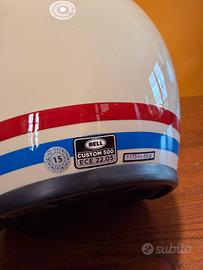 Casco jet Bell Custom 500 taglia L, colore bianco con dettagli rosso/blu. Usato pochissimo, in ottime condizioni, vendo per cessione moto. Completo di cinturino e interni puliti.