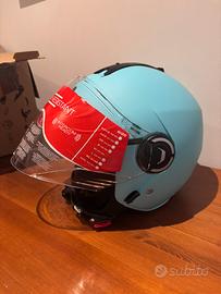 Vendo casco jet CABERG Riviera V4, colore azzurro opaco, taglia S (55-56). Casco praticamente nuovo: mi è stato regalato per la laurea ma non ho mai acquistato un motorino, quindi è stato utilizzato solo due volte come passeggero. Come visibile, è ancora presente l’etichetta originale sulla visiera. Ideale per chi cerca un casco leggero, moderno e in condizioni pari al nuovo. Per ulteriori informazioni o foto, contattami!
