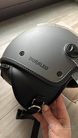 Vendo casco jet Duraleu modello Vento 06 in colorazione Nero Opaco. Il casco è stato utilizzato pochissimo ed è perfetto dal punto di vista igienico e strutturale. Caratteristiche principali: • Sicurezza: Omologato secondo la più recente normativa ECE 22-06 (massimi standard di protezione attuali). • Taglia: M. • Comfort: Dotato di pratico visierino parasole a scomparsa integrato, ideale per le giornate soleggiate. • Design: Colore opaco di grande impatto, perfetto per scooter, cafè racer o custom. Condizioni dell'oggetto: Il casco è meccanicamente perfetto e gli interni sono pari al nuovo. Segnalo, per massima correttezza, la presenza di piccoli graffi superficiali sulla calotta dovuti allo sfregamento nel vano sottosella dello scooter (come visibile in foto), che non ne compromettono in alcun modo la sicurezza.
