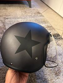 Bellissimo casco jet made in Italy, marca "DMD" helmets mod. Star Grey, taglia XS, interamente realizzato in fibra di vetro. Confortevole, leggero e soprattutto molto resistente, ha tutte caratteristiche essenziali per un motociclista. La grafica richiama gli storici modelli Stars and Stripes degli anni Settanta. Il casco , dalle linee semplici, accontenta il motociclista amante del vintage e anche lo scooterista alla ricerca di un casco comodo, piccolo, sicuro e originale. Presenta bottoni integrati alla calotta per permettere il montaggio delle visiere. Interni completamente removibili e lavabili, cinturino con chiusura di sicurezza a doppio anello, completo di omologazione ECE 22.06, peso del casco 900 gr. +/-50, completo di confezione come da foto. Pertetto per la città, casual, sicuro e protettivo, assorbe gli urti attutendo anche i colpi più violenti per la caratteristica costruttiva dei suoi materiali. Acquistato per un bambino, è stato usato veramente pochissime volte.