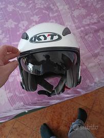 casco jet della KYT taglia L, ottimo compromesso tra sicurezza e vestibilità,con ampie prese d'aria (8)e visiera oscurata polarizzata,interni removibili in ottime condizioni,usato poco,qualche graffio superficiale da usura,mai caduto.cedo con previa pulizia e sanificazione.
