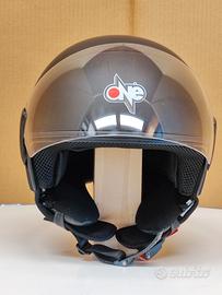 Casco jet marca One, modello 853, di colore nero opaco, taglia xs (54), in perfette condizioni funzionali e di pulizia. Usato per mezz'ora in tutto, è completo di scatola originale, sacca parapolvere e adesivi catarifrangenti non applicati.