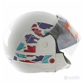 Codice ricambio: 7032 (R.7032) Vendo casco jet vintage omologato nuovo Mds Helmets Falcom Sky originale epoca di colore bianco - rosso - viola - azzurro con visiera fumè , taglie disponibili 56 S , 58 M , 60 L , 62 XL , con spugna interna sgretolata , da rifoderare