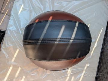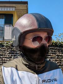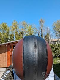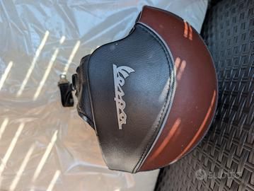 Casco jet per Vespa vintage in pelle bicolore con logo Vespa con interno in polistirolo omologato, taglia L, adatto per raduni Vespa, piccoli spostamenti, non adatto per lunghi viaggi.