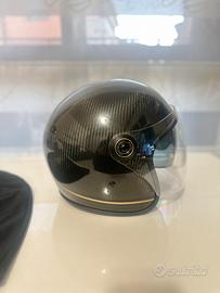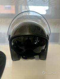 Per inutilizzo vendo casco jet nero effetto fibra di carbonio, leggerissimo, doppia visiera come nuovo, utilizzato pochissime volte, no segni di usura, no graffi inclusa la sua sacca di trasporto.