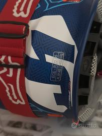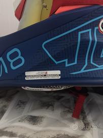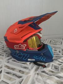 Casco fuoristrada Just1 J18 Vertigo, con una finitura opaca blu vibrante, bianco e arancione fluorescente. È un casco da motocross ed enduro in fibra di vetro progettato per una protezione e un comfort di alto livello durante le sessioni fuoristrada. (prezzo leggermente trattabile) senza scatola
