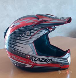 Casco Lazer x taglia 59/60. Design sportivo con grafica rossa, grigia e nera.
