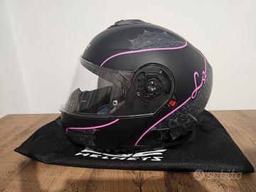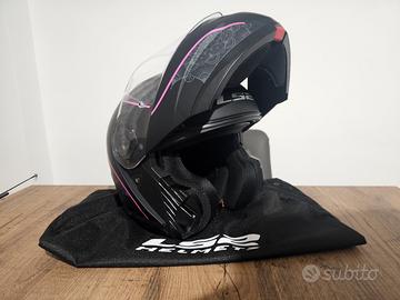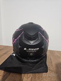 Vendo per taglia errata casco modulare ls2 strobe II lux colore nero con disegni rosa.