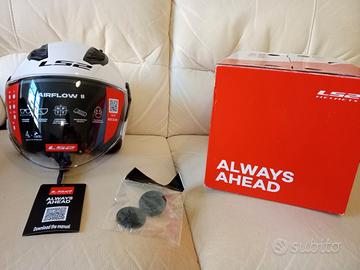 Vendo nuovo di zecca il casco LS2 moto Airflow II tg. XL Bianco. Presenta una visiera protettiva lunga trattata per essere antigraffio e conforme alla norma 22.06. Leggero con i suoi 950g, è perfetto per l'utilizzo in città. Puoi personalizzarlo con uno schermo fumé o iridium.