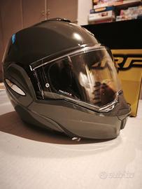 Casco modulare apribile Scorpion Exo Tech Evo Pro Solid Grey. Taglia XS = 54-55CM. Vendo per errata taglia. Colore Cement Grey Solid. Usato due volte per errata taglia. Casco modulare per adulti con doppia omologazione P/J e nuova omologazione ECE 22.06 Materiale: calotta in fibra TCT Ultra pre-preg di ultima generazione, leggera e altamente resistente Visiera MaxVision: policarbonato chiaro e resistente ai graffi con Pinlock 3D Originale (pellicola antiappannamento ad alte prestazioni) Sistema di sostituzione dello schermo Quick Release/One Touch Buckle, senza bisogno di attrezzi Omologazione ECE 22.06 Omologazione P/J con sistema di bloccaggio (utilizzabile sia in configurazione Jet che Integrale) Cinturino sottogola: fibbia micrometrica Interno: tessuto KwikWick3® molto morbido, ipoallergenico, antitraspirante, completamente rimovibile e lavabile Kwikfit: facile passaggio delle aste degli occhiali Doppia omologazione P/J: integrale e jet