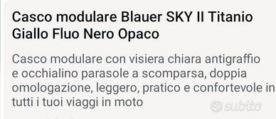 casco modulare Blauer Sky II titanio con visiera chiara antigraffio e occhialino parasole a scomparsa, nuovo