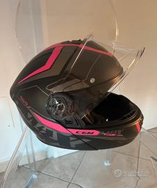 casco modulare CGM 569 usato, interni facilmente rimovibili. Nero e rosa