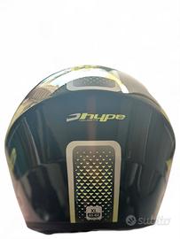 Vendo casco per moto/scooter Hype modello HP6.11, colore nero con inserti giallo fluo ad alta visibilità. Il casco è un modulare (la mentoniera si solleva comodamente) ed è in taglia XL (61-62 cm). Caratteristiche principali: -Doppia Visiera: Visiera esterna trasparente + visierino parasole interno a scomparsa (si aziona con un tasto laterale). -Ventilazione: Sistema di aerazione con prese d'aria superiori e sulla mentoniera. -Chiusura: Cinturino con sgancio rapido micrometrico (molto pratico). -Condizioni: Interni ben tenuti e meccanismi perfettamente funzionanti. Il casco non ha mai subito urti o cadute. Vendo per inutilizzo No perditempo