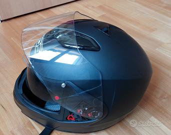 Vendo casco modulare MDS MD200 taglia S di colore nero opaco (solido flat black). Il casco ha doppia visiera (quella interna parasole), prese d'aria apribili sul mento e superiore e cinturino con chiusura micrometrica. È praticamente nuovo: ha ancora la pellicola sulla visiera interna. Consegno anche sacca porta casco.