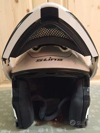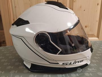 Taglia M 57-58, con scatola originale, sistema di aerazione efficiente, smontabile, visiera trasparente, visierino da sole a scomparsa, visiera anti-appannamento interna che si aggancia ai pinlock, mentoniera che si apre con un unico tasto centrale.