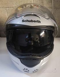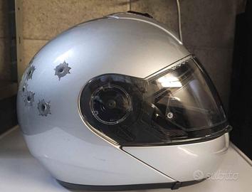 Casco usato molto ma tenuto sempre bene. Visiere ok, qualche graffietto sulla calotta (mai caduto), interni accettabili. Dovrebbe essere una misura L (non c'è più il tagliandino)