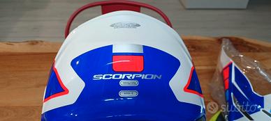 Casco modulare SCORPION ADX-2 taglia S (di mia moglie e usato 3 volte non per il casco ma perché non vuole più saperne della moto) , omologazione ECE 22-06 in ottime condizioni anche interne. Con visierino para sole, chiusura micrometrica, ventilazione superiore e su mentoniera, predisposto per interfono, volendo e fornito si può anche mettere il frontino come i caschi da enduro. Colore CAMINO Pearl white-Blue-Red. Il pinklock non è fornito.