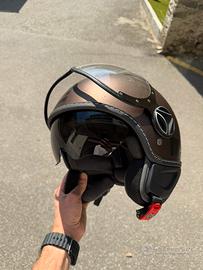 Vendo bellissimo casco jet Momo Design, modello iconico FGTR Fighter. Il casco si presenta in un elegantissimo color marrone bronzo opaco con scritte nere, un classico intramontabile per chi si muove in città in scooter o moto. Caratteristiche e Dettagli: • Taglia: M (misura precisa 57 cm, indicata nell'etichetta interna). • Peso: Ultraleggero, solo 980 grammi, ideale per non affaticare il collo. • Visiera: Doppia visiera inclusa. Visiera esterna grande trasparente antigraffio con supporti in fibra di carbonio + visierino solare a scomparsa fumé (molto pratico per le giornate di sole). • Interni: Tessuto ad alto assorbimento del sudore con rete microforata, rifiniture fatte a mano. • Sicurezza: Prodotto Made in Italy, omologato (presente etichetta di omologazione E3 sul cinturino). Condizioni: Il casco è usato ma tenuto con cura. Gli interni sono puliti e integri. Esteticamente presenta solo dei leggeri e normali segni di utilizzo sulla calotta (visibili in foto), ma non ha mai subito urti o cadute. Spedizione: Disponibile per spedizione con TuttoSubito o consegna a mano a Varallo, Piemonte