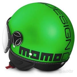 Casco Momo Design modello Fighter Fluo, colore verde opaco e nero. Questo casco demi jet è realizzato in policarbonato e la notevole resistenza agli agenti atmosferici è determinata dalla particolare vernice utilizzata. Gli interni sono in tessuto ad alto assorbimento di sudore, microforati e amovibili per il lavaggio. Il sistema di chiusura del cinturino e dotato di fibbia micrometrica. Come ogni articolo della Momo Design, anche questo prodotto è estremamente ricercato nel look e rifinito fin nei minimi dettagli. La visiera, di tipo aeronautico, è impreziosita da supporti in vera fibra di carbonio e perni in alluminio. Sulla calotta è impresso il logo, ormai caratteristico e alla moda, Momo Design.