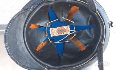 N243) Casco da moto vintage in uso negli anni '60/70 (questo specifico marcato 1973). ex modello Ubott originale CC. Il casco è totalmente vintage, è stato poco usato ed è in condizioni generali molto buone ed originale. Verniciatura (alcuni segni presenti, qualche zona un pò opacizzata o con qualche graffio superficiale) originale, interni ottimi, sottogola originale presente e funzionante. La taglia non è indicata ma è una media circa 56/57, senza alcun impegno su taglie, vestibilità, ecc., lo cedo esclusivamente come pezzo da collezione. Etichetta originale del produttore presente.