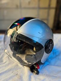 Vendo casco jet BYE omologato ECE-R 22.05, taglia XL 61, peso indicato 1100 g ± 50 g. Tenuta in buone condizioni generali con qualche lieve segno. Dotato di visiera esterna trasparente.