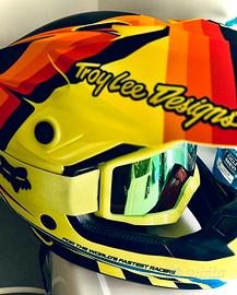 Casco immacolato NUOVO e MAI utilizzato, completo di scatola. Insieme compresa anche maschera FOX a specchio come da foto. Taglia L (58-59). Prezzo non trattabile. Consegna solo a mano a Torino.