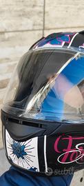 Casco integrale Scorpion EXO-390 da donna, rosa, taglia S (55-56 cm). Leggero, aerodinamico, adatto a moto e scooter. Predisposto per interfono (non incluso). Mostra segni di usura visibili in foto, struttura integra. Offre protezione e comfort, ideale come primo casco.