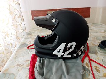 Vendo casco moto stile retrò con occhialone in ottime condizioni mai usati. il casco ha ancora il cartellino attaccato sulla cinghia e sacca data dal negozio, gli occhialoni come in foto li vendo con custodia, scatola e lente trasparente ancora impellicolata.
