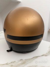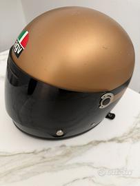 Vendo Casco moto integrale AGV Legend X3000 ORO/NERO con visiera nera in buone condizioni. TAGLIA L Materiale Calotta: in fibra di vetro, dalla progettazione vintage 3 taglie di guscio interno in EPS per adattarsi perfettamente alla tua morfologia Visiera con trattamento antigraffio dotato di un'apertura d'aria regolabile, che distribuisce l'aria grazie a canali presente nel guscio interno Sistema di micro-apertura della visiera con un meccanismo in alluminio Chiusura della visiera garantita da 2 magneti Interno di gran lusso dal comfort eccezionale, concepito in tessuto scamosciato e vera pelle, decorato con logo ricamato, estraibile e lavabile (ad eccezione del collare) Sistema di ritenzione: Chiusura con sottogola a doppia D Casco che risponde alle norme ECE 2205