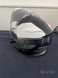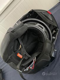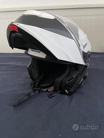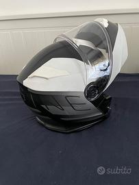 Casco modulare omologato P/J (sia aperto che chiuso) con ultima omologazione 2206 usato poco (solo 2 stagioni estive per uscite di domenica). Taglia XL Caschi modulari con sistema Bluetooth integrato Delta è il casco “all-in-one” dotato di visierino solare a scomparsa, mentoniera apribile e sistema Bluetooth A2/A4 integrato. Questo casco rende confortevole qualsiasi tipo di viaggio, soddisfacendo anche i riders più esigenti; Il nuovo sistema di comunicazione Bluetooth Blinc A2/a4 integrato nel casco garantisce una ottima qualità audio e comfort: potrai parlare con il tuo passeggero o un altro motociclista (dotato del solito casco o di un casco con il modulo Blinc BL100i), gestire il tuo smartphone (supporta i comandi vocali), ascoltare musica con il lettore MP3 o ricevere indicazioni dal navigatore satellitare. Il modulo è dotato di un sistema digitale di riduzione dei rumori di fondo che riduce drasticamente le interferenze (vento, rumori di fondo, motore). Può essere usato in abbinamento al telecomando esterno da manubrio Blinc BL-300. SCHEDA TECNICA Peso:1650 gr+50gr Omologazione:Ece 22-06 Calotta esterna:Calotta in resina termoplastica Interni:Interni anallergici, removibili e lavabili CARATTERISTICHE TECNICHE BT Bluetooth 4.0 Riduzione di rumore Altoparlanti Stereo Chiamata vocale Batteria integrata: 12 ore in funzione - Stand-by 60 ore Musica GPS Istruzioni Compatibile con Blinc BL-300 Comandi vocali Altre informazioni: l'interno del casco è rimovibile e lavabile, ultra morbido e confortevole. Si adatta meglio al viso e alla testa.