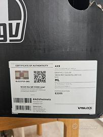 Casco moto AGV AX9 taglia ML. Usato sempre con sottocasco, anche in estate e per brevi tragitti. Manca visiera e kit di montaggio.