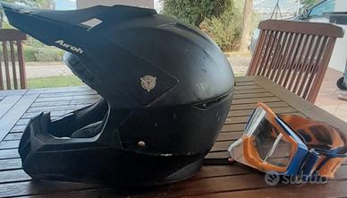 Casco integrale da Motocross Airoh , colore nero opaco , con annessa mascherina arancione .