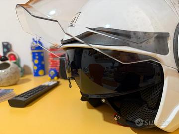 Casco moto/scooter pari al nuovo (cone si evicono dalle foto) utilizzato solo un paio di volte. Compreso di telo copri casco misura L, va bene da 58 cm. Acquistato alla modica cifra di 75€