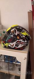 Casco da moto marca MT, taglia M. Design aggressivo con grafica Crazy Dog e dettagli Monster Energy.