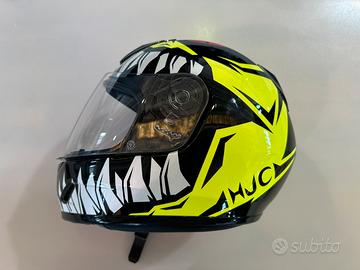Vendo, per cambio taglia, casco da moto HJC, taglia M - YOUTH da bambino/donna, come nuovo, sia esternamente sia internamente, piccoli segni di utilizzo, autografato da Manuel Gonzales ( Moto2 ).