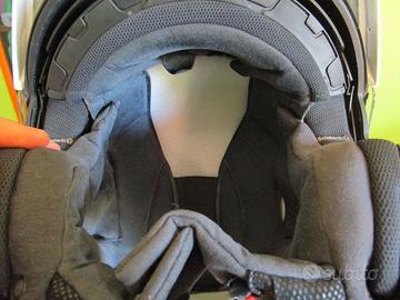 Il meccanismo di apertura/chiusura della mentoniera è perfetto come quello della visiera; la parte centrale della imbottitura è stata tagliata per rendere il casco un pò meno stretto nella parte alta ed è stata inserita una protezione in gomma come potete vedere dalle foto.