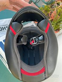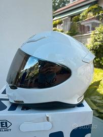 Stupendo casco da motociclista della prestigiosa casa giapponese Shoei. Usato pochissimo, come si vede da tutte le foto, pagato 450 euro. Leggerissimo e bellissimo, in fibra Shoei. Corredo completo di scatola e accessori. Monta una mascherina scura specchiata che ho pagato a parte al momento dell'acquisto. Insieme spedisco la sua originale trasparente che si vede anche in foto mai usata. Taglia M (57-58 cm). PREZZO TRATTABILE Consegna anche a mano a Roma zona Termini-Policlinico Umberto I DIFETTI - GRAFFIO superficiale presente sopra alla calotta lato sinistro, vedere bene le foto - Manca il piccolo coperchietto sopra alle prese d'aria mentoniera.