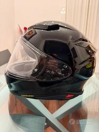 Casco moto SHOEI NXR2 taglia S 55-56 cm, nero lucido, pinlock montato, usato 3 volte, nessun segno di usura, chiusura ad anello, spugne interne intatte, in garanzia con scatola e sacca portacasco. Eventuali spese di spedizione a carico acquirente.