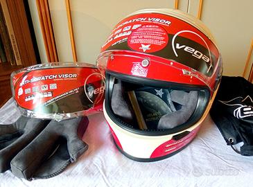 Vendesi a Bologna, CASCO MOTO VEGA INTEGRALE vintage, taglia M. NUOVO, imballato ma cartone non originale. Visiera e guanciali di ricambio inclusi.